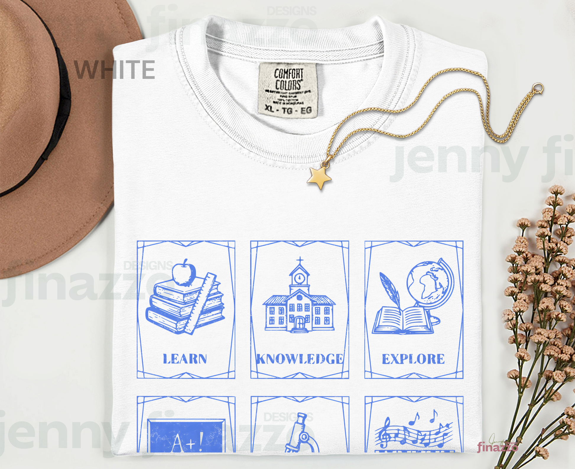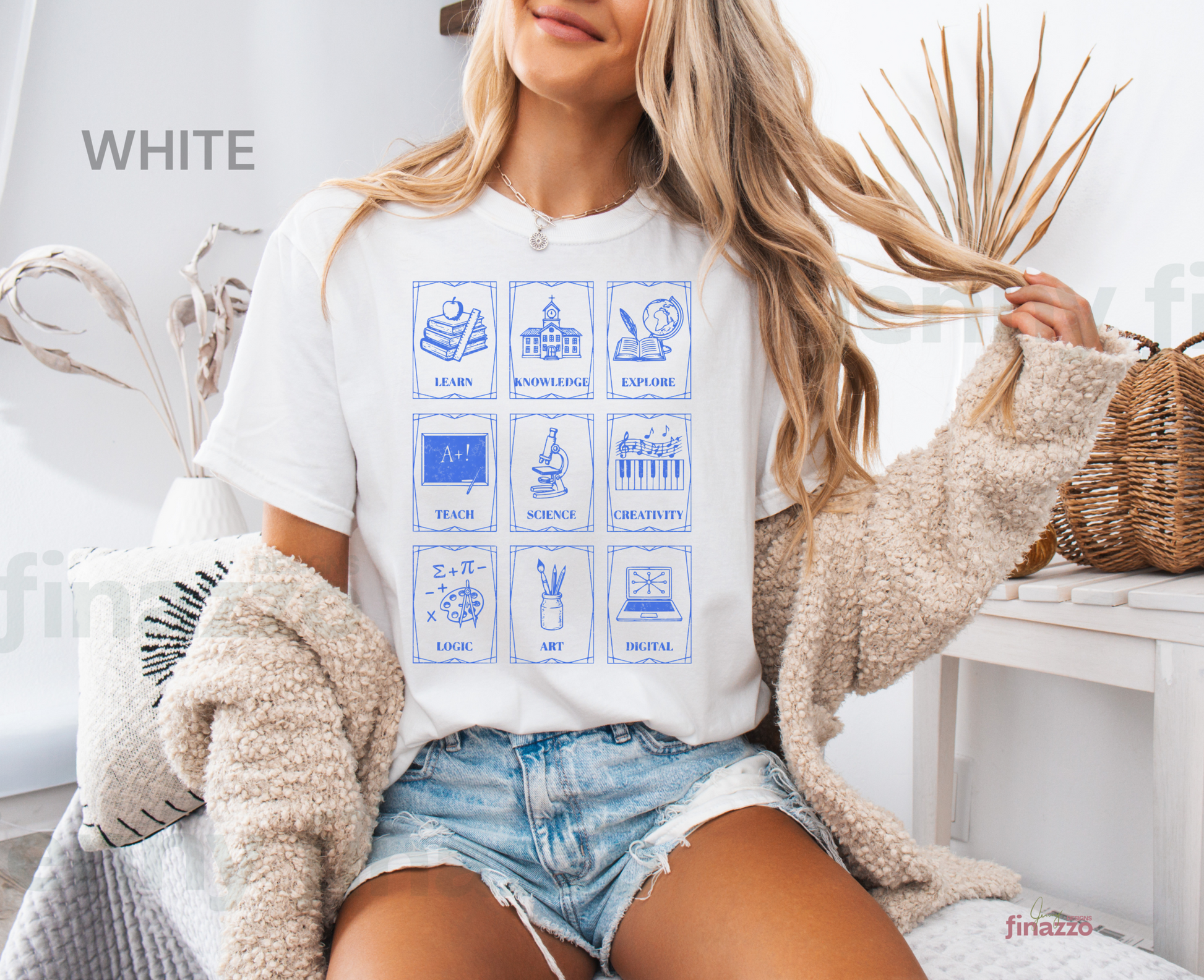 Celebrate the full spectrum of education with this unique Teacher Life Shirt featuring a graphic grid of nine subjects, including Knowledge, Logic, Creativity, and Science. As the ultimate Teacher Appreciation Gift or a meaningful way to represent the passion of a Librarian or Homeschool Mom, this tee embodies the positive, multi-faceted journey of learning.