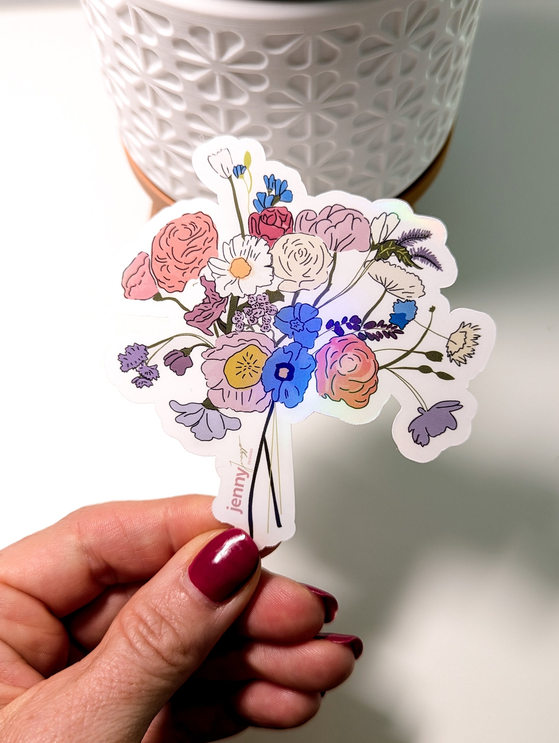 FLOWER BOUQUET WATERPROOF VINYL STICKER, 3"
