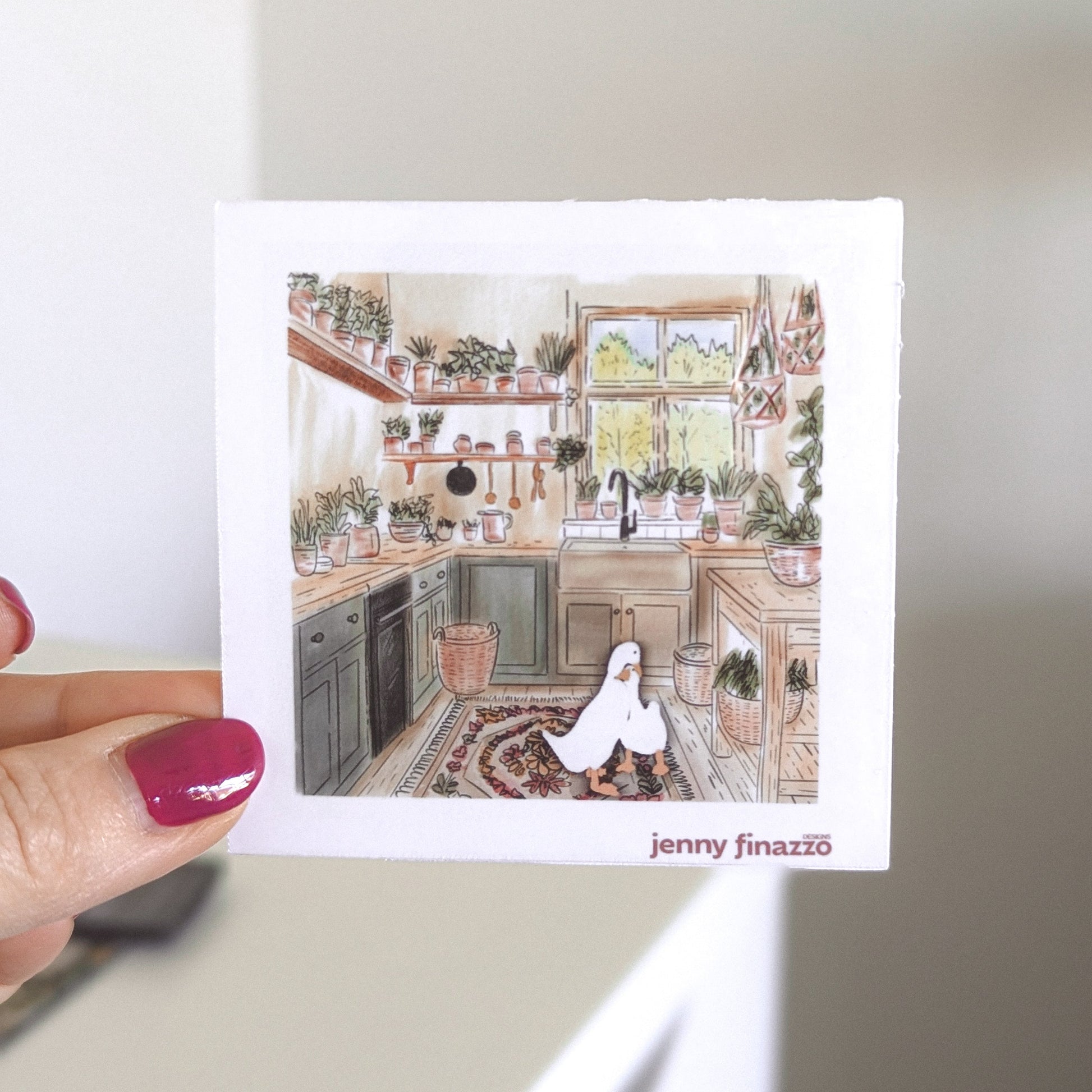 COZY KITCHEN DUCK VINYL SQUARE STICKER– 3”