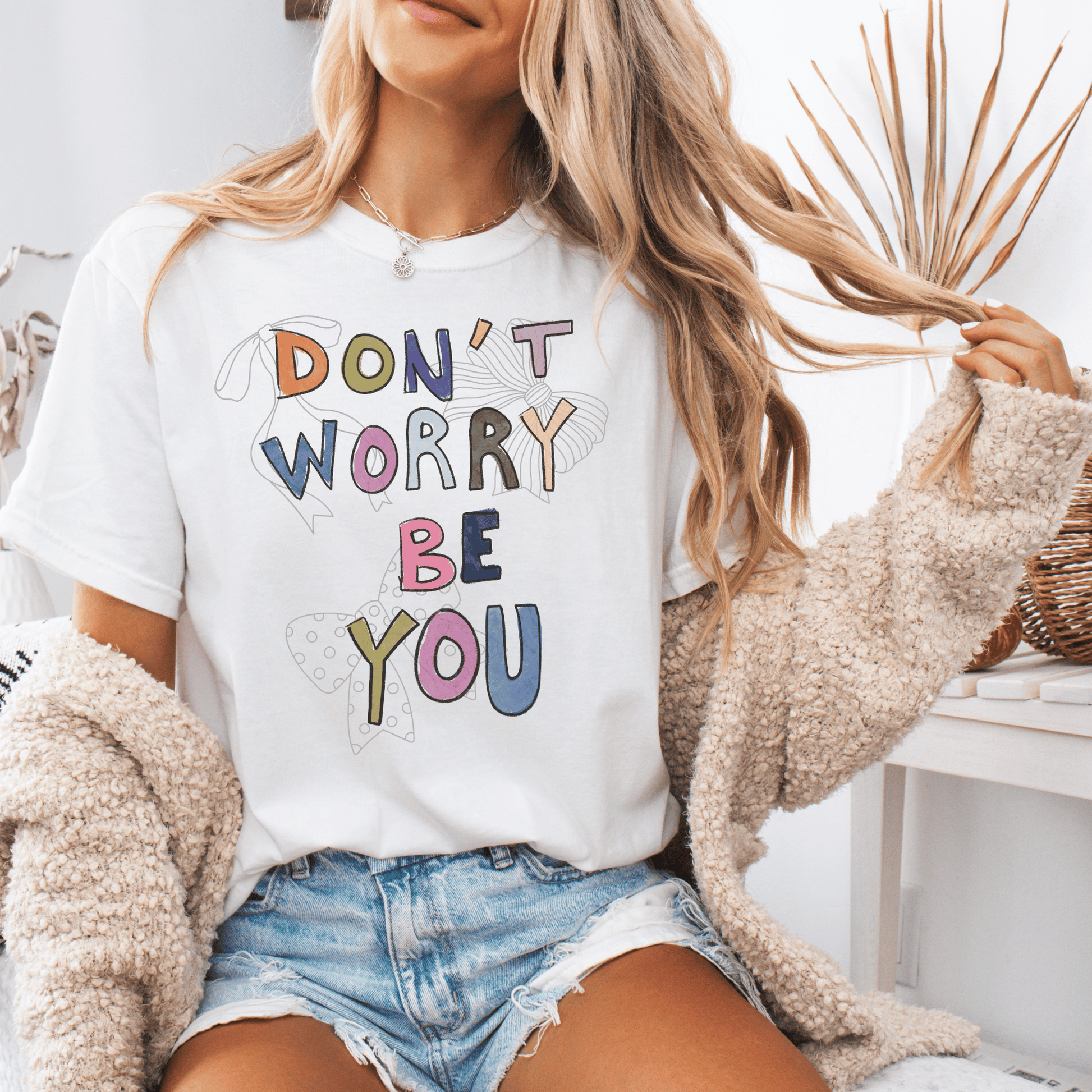 This 'Dont Worry Be You' t-shirt exudes a positive and carefree vibe, making it perfect for those who value self-love and positivity. It is a great addition to a casual wardrobe and is relevant for occasions like birthdays, holidays, and everyday wear. Ideal for both men and women.