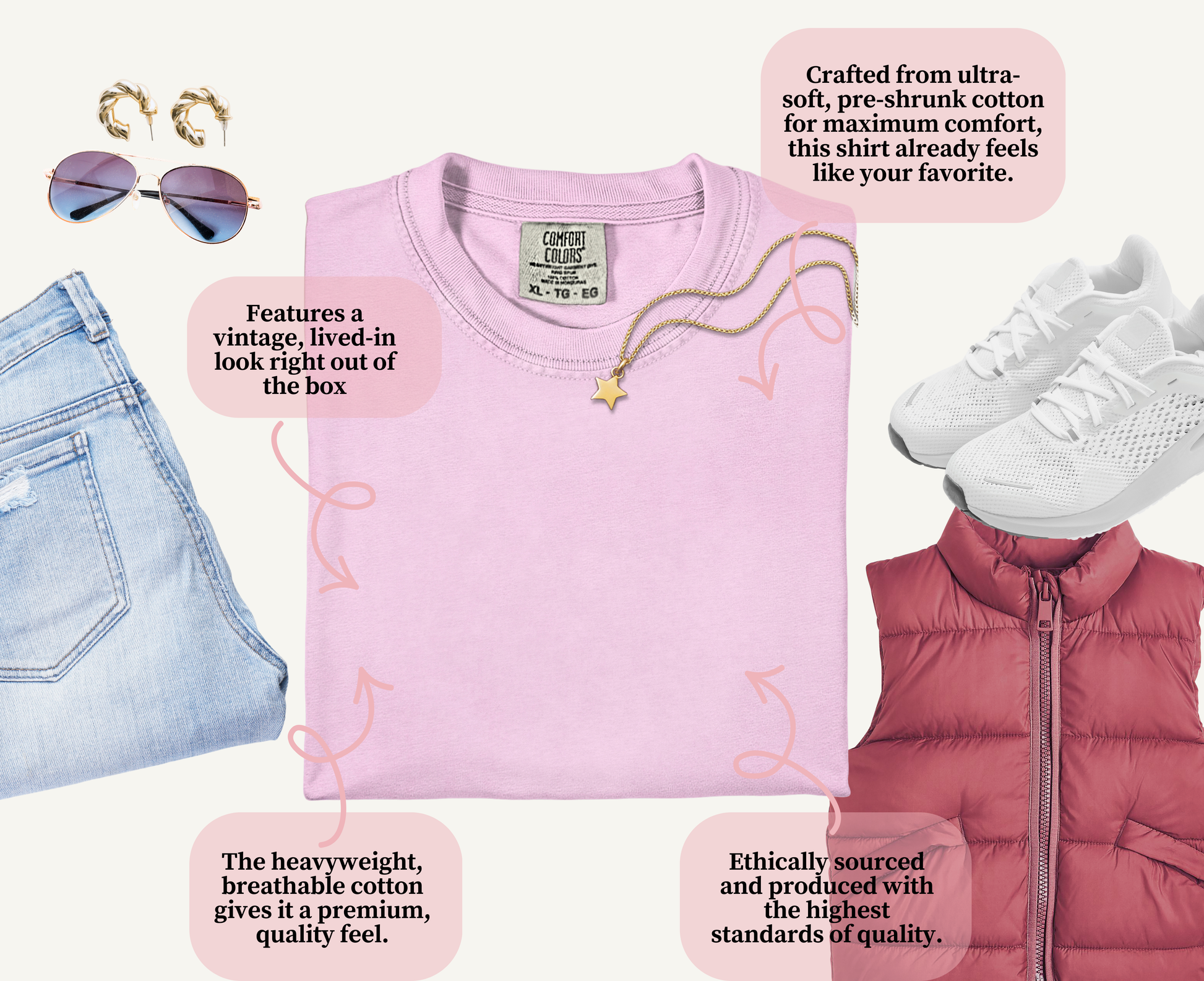 Comfort Colors Commitment: The Comfort Colors manufacturing process is committed to reducing environmental impact, including using sustainably sourced cotton and following strict labor and environmental standards.